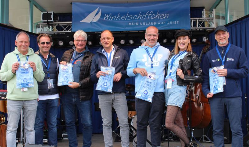 Das Bild oben auf der Startseite zeigt die Beteiligten der Eröffnungsfeier, (v.l.n.r.) Jörg Rosenbohm (Hauptorganisator), André Berger (Sponsor Winkelschiffchen), Dr. Tjark Goerges (Bürgermeister), Carl-Ulfert Stegmann (Sponsor Norden-Frisia), Guido Schmitz (Sponsor Colours & Sons), Annie Heger (Moderatorin), Jens Heyken (Leiter Nationalparkhaus Juist)