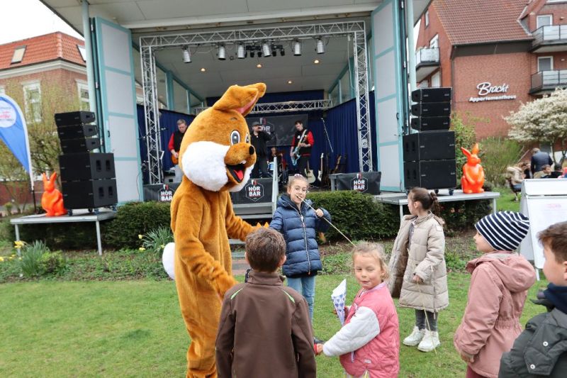 Zusätzlich stieg die Vorfreude auf das erste große Fest im Jahr durch den WalkingAct. Die Emsländische Band „Hörbar“ tat ihrem Namen alle Ehre. Im Dorf konnte man den ganzen Tag aus verschiedenen Straßen eine Rock-Pop-Mischung live erleben. Jedes Geschäft, welches zu dem Verein IGE Juist gehört, bekam ein eigenes kleines Haustür-Konzert bei wärmendem Sonnenschein. Die Musik blieb an diesem Tag aber nicht das einzige Highlight, der lebendige Osterhase und seine Osterhasenfrau hoppelten durchs Dorf. Beide verteilten Süßigkeiten und hielten gefüllte Eier mit Gutscheinen für das Juister Trampolin als Überraschung in ihren Körbchen bereit.