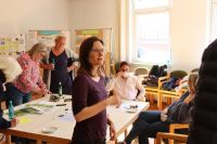 Nach einer kleinen Kaffeepause ging es dann um 16:00 Uhr im Dorfgemeinschaftshaus in die Projektwerkstatt, wo wir uns in Gruppen zu bestimmten Vorhaben zusammenfanden. Wir diskutierten intensiv über den Kurplatz, den Spiel- und Boule-Platz, über ein Nachbarschafts-Gartenprojekt und über die Möglichkeiten für ein Dorfgemeinschaftszentrum am Janusplatz.