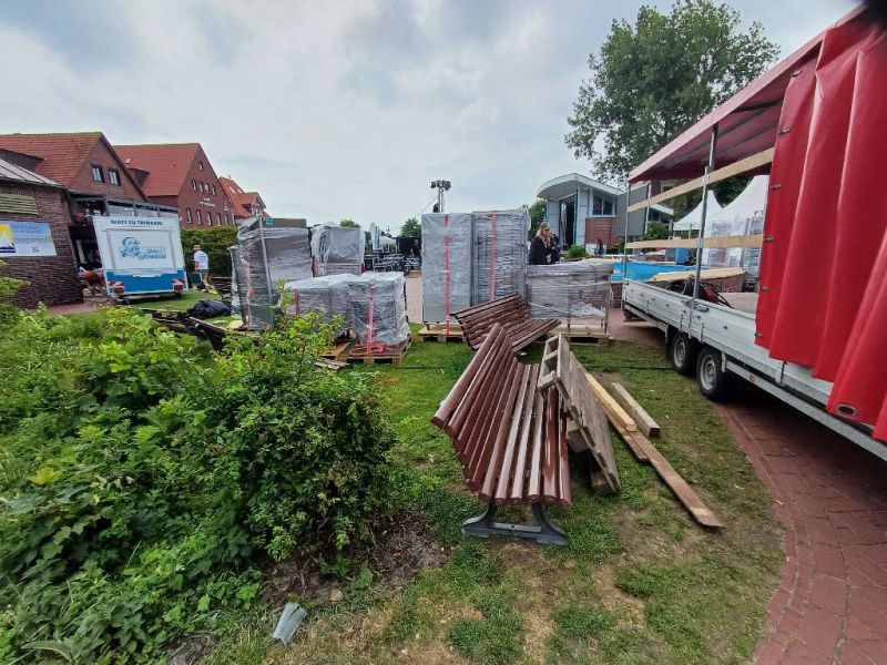 Auch das gehört zu einem großen Event wie das Juistival dazu: Der Abbau auf dem Kurplatz am Sonntag nach dem Festival. Zudem waren aber auch die Reedereien gefragt, denn eine dicke Abreise stand am Sonntagmittag bevor.