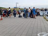 Mit der Mittagstide ging dann die große Rückreise los. Schnell war die „Frisia IX“, die bereits seit gestern im Hafen lag, gefüllt, dann folgten weitere vier Schiffe (Frisia II, VI, X und XI) der AG Reederei Norden-Frisia. Aber auch die kleinen Fähren hatte mehr als reichlich zu tun, so die beiden Schnellfähren „IE 1“ und die neue „IE 2“ der Reederei Cassen-Tours, eine Tochter der Norden-Frisia. Und natürlich die Reederei Töwerland Express, die am Mittwochabend viele Eventbesucher bis in die späte Nacht nach Juist brachte und die nun auch wieder mit dem „Töwi“ zurück fahren wollten.