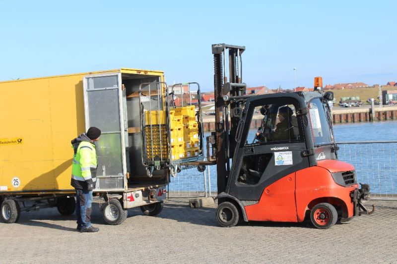 Auch bei Sendungen von der Insel funktioniert nun einiges anders, sie geht ebenfalls nur montags bis freitags mit dem Frachtschiff ans Festland. „Die abgehende Post soll eine Stunde vor der Ankunft des Frachters hier sein, denn nur dann haben unsere Mitarbeiter Zeit, diese auch in den Janssen-Hänger zu verladen,“ so Jacobs. Ist der Frachter erst einmal fest, gehen nicht nur die Lebensmittel vor, zudem muss zügig ent- und wieder beladen werden, damit das Frachtschiff noch mit derselben Flut wieder zurück nach Norddeich fahren kann.